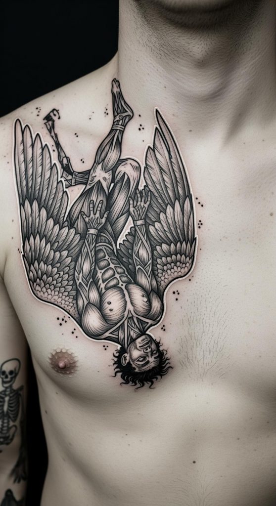 9. Fallen Angel Chest Tattoo Design