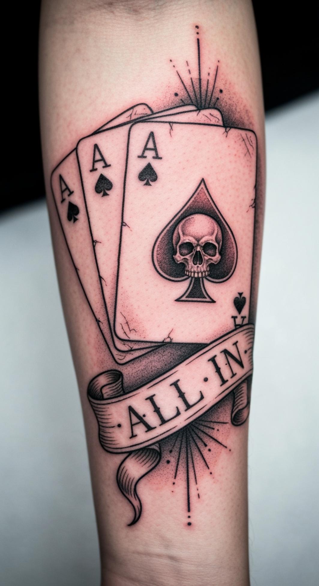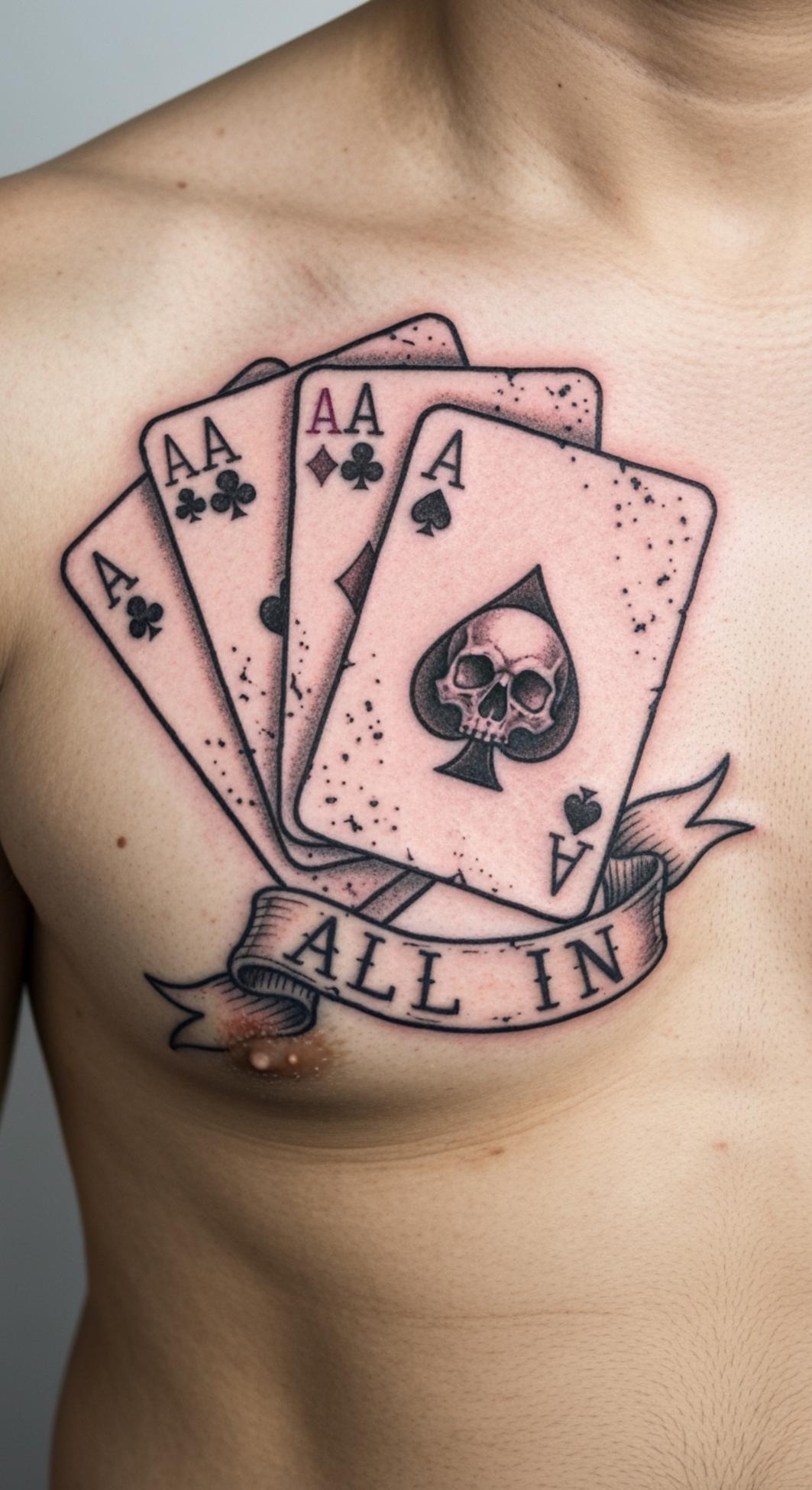 This tattoo is an unmistakable statement for anyone who views life as a gamble worth taking, using art to proudly reflect their readiness to “go all in” on their own path and principles.