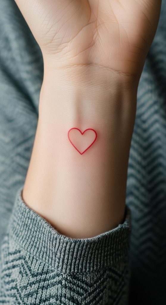 A delicate red heart outlined in simplicity, this tattoo whispers of love in its most honest and unguarded form. The heart motif, across cultures and centuries, has symbolized passion, vulnerability, and the abiding power of emotional connection.