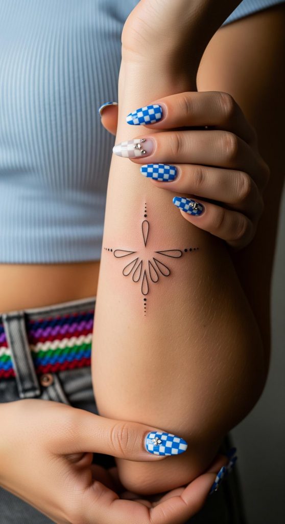The elegant, flowing lines of the design evoke feminine creativity and an intuitive grace, making it an ideal expression for women who embrace subtleness and refined strength. This tattoo offers a powerful yet delicate way to celebrate one’s courage, cherished dreams, and the beauty of charting a unique path—perfect for those seeking to honor their story with artistry and meaning.